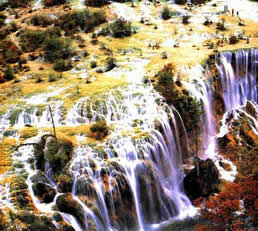 Located in Jiuzhaigou County of Aba Tibet and Qiang Autonomous Prefecture in Sichuan Province, over 460 kilometers south of Chengdu, this fantastic fairyland belongs to carbonate barrier lake landform with high mountains and deep valleys. A vast area of 60,000 hectares, it has a scenic area of 80 kilometers long with six marvelous spectacles, including the Long Lake, Sword Cliff, Nuorilang Waterfall, Shuzhenggou Gully, Zarugou Gully and Black Lake. There are nine old Tibetan villages in the gorge, hence the name Jiuzhaigou Valley.