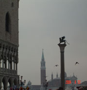 雄伟壮丽的圣马可大教堂始建于829年,重建于1043~1071年,它曾是中世纪欧洲最大的教堂,是威尼斯建筑艺术的经典之作。据说其中埋葬了耶酥门徒圣马可而得名。圣马可是圣经《马可福音》的作者,被威尼斯人奉为护城神,其坐骑是狮子,当威尼斯摆脱拜占庭的控制,成为一个城市共和国后,元老院决定圣马可为城市的新守护神,以代替狄奥多尔,所以威尼斯的城徽是一只巨大的狮子抱着福音书。圣马可教堂不仅也是一座教堂而已,它是一座非常优秀的建筑,同时也是一座收藏丰富艺术品的宝库。它融合了东、西方的建筑特色,它原为一座拜占庭式建筑,15世纪加入了哥特式的装饰,如尖拱门等;17世纪又加入了文艺复兴时期的装饰,如栏杆等。从外观上,它的五座圆顶据说是来自土耳其伊斯坦堡的圣索菲亚教堂;正面的华丽装饰是源自拜占庭的风格;而整座教堂的结构又呈现出希腊式的十字形设计,这些建筑上的特色让人惊叹不已。