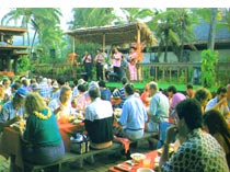 有好几处的夏威夷式宴会得到了大家的一致推崇:大岛科纳村每周五晚宴上的食物被公认为最地道的;毛伊岛老式的拉海纳宴会在南城的海滨举行.