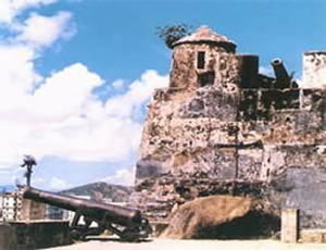 又名圣保禄炮台、中央炮台或三巴炮台,座落在大叁巴牌坊侧,是澳门主要名胜古迹之一。大炮台建于公元1616年明神宗年间,本属教会所有,为保护圣保禄教士而兴建,用以防御海盗,后转为军事设施区。炮台四周均置有巨型钢炮,现今古炮虽已失去军事作用、却成为澳门的古旧文物和历史见证。