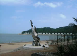 路环岛南面的黑沙湾海滨浴场,是澳门著名的天然浴场,海湾呈半月形,古称"大环",坡度平缓,滩面广阔,岸边有一片人工松林,茂密苍翠。沙滩上是黝黑的沙粒,细腻柔滑。海滩因而得名。据说,黑色的细沙是由于海洋特定环境形成的带黑的次生矿海绿石所致。"海绿石"受海流影响,被搬运至近岸,再由风浪携带到海滩,使原来洁白明净的白沙滩,变成了神秘的黑沙滩。