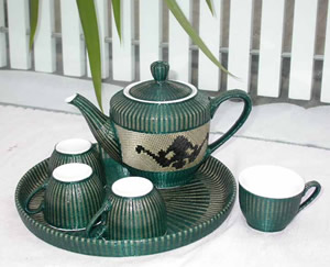 瓷胎竹编产品只使用竹材表面一层,纤维十分致密,同时进行了特殊的处理,能够耐干燥,不变形,不虫蛀,耐水可清洗。