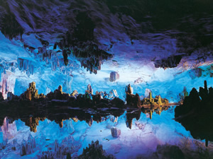 芦笛景区位于桂林市西北的桃花江畔,距市中心6公里,是一个以游览岩洞为主、观赏山水田园风光为辅的风景名胜区,是整个 漓江 风景名胜区的重要组成部分,也是1982年11月国务院颁布的第一批国家重点风景名胜区。整个岩洞犹如一座用宝石、珊瑚、翡翠雕砌而成的宏伟、壮丽的地下宫殿。这些千姿百态的钟乳石是由于地下水的作用,溶解岩石中的碳酸钙,经过上百万年的沉淀结晶堆积而成的。因此, 芦笛岩被人们誉为" 大自然艺术之宫 ",拥有大自然赋予桂林山水清奇俊秀的岩溶风貌。 芦笛景区由候山和 芦笛岩以及桃花江、芳莲池等水体水景组成 ,群峰环抱,碧水长流山下芳莲池碧波荡漾,岸柳婆娑,桃花盛开,加上造型别致的水榭、漂浮水面的“睡莲”、以及架连光明山与芳莲岭的天桥,与 芦笛岩洞交相辉映,天然成趣,是人们春游渡假、休闲、登临的最佳去处。