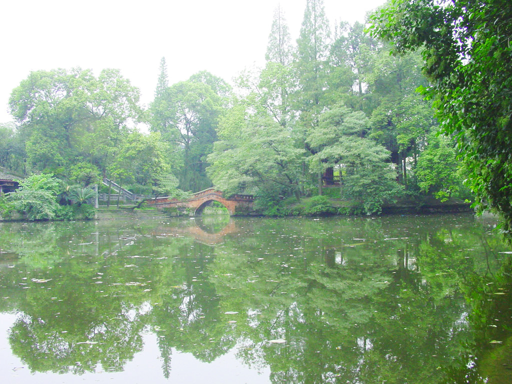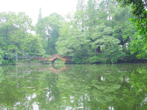 如今,池内荷花胜景虽不复存在,但池畔红梅之盛仍驰名川西,琴鹤堂、问梅山馆、湖心亭、望月楼等建筑古朴典雅,诸景点之间或云墙环护、花木掩映,或曲径相爱、枝叶相接。根据清代作家曹雪芹的小说《红楼梦》改编的电影,有不少镜头都在罨画池拍摄而成。游罨画池,会有一种再入唐时画境、池波寄意无穷的感觉。 |