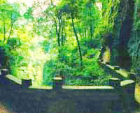 罨画池位于城区中心,占地约38亩,素有川西名园之称,是省级重点文物保护单位。公园大门的仿明清建筑系新近规划之作,不久,园区将按规划扩大至百亩左右。