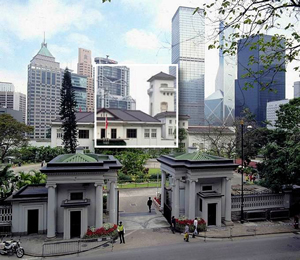 香港礼宾府位于中环上亚厘毕道,正门朝南,面向太平山。中区政府合署座落其北面斜坡下,是政府总部大部分办公室的所在处。