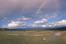 夏季是草原的黄金季节,这里天高气爽,能见度很高。天地之间,绿草茵茵,繁花似锦,芳香幽幽,一望无涯。草地中星落棋布地点缀着无数小湖泊,湖水碧蓝,小河如藤蔓把大大小小的湖泊串连起来,河水清澈见底,游鱼可数。