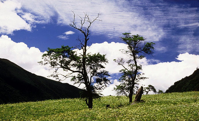 草原地势平坦,一望无际,人烟稀少。红军二万五千里长征曾多次通过这里,留下了许多可歌可泣的动人故事和革命遗址,使草地声名远播海内外。夏季是草原的黄金季节,这里天高气爽。天地之间,绿草茵茵,繁花似锦,芳香幽幽,一望无涯。草地中星落棋布地点缀着无数小湖泊,湖水碧蓝,小河如藤蔓把大大小小的湖泊串连起来,河水清澈见底,游鱼可数。