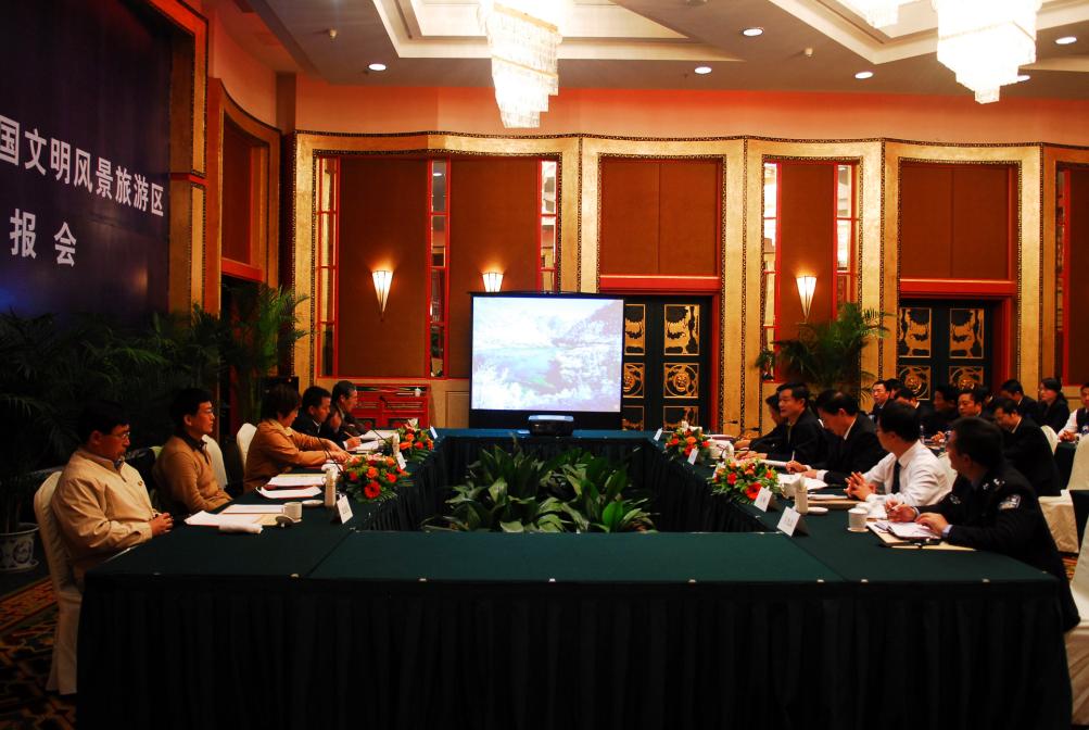 21日上午,测评组在喜来登大酒店2楼会议室听取了九寨沟景区的创建工作汇报。22日,考核测评组结束相关工作返程。