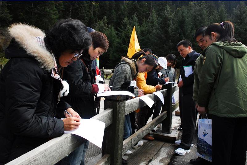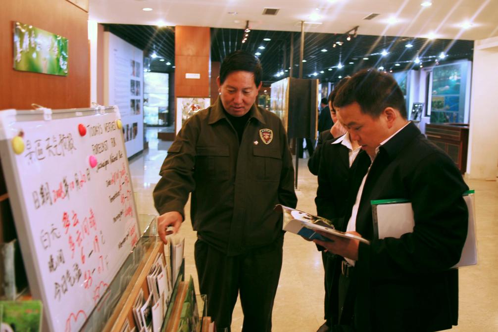 20日,考核组一行首先查看了游客中心的功能布局,对一楼展厅查询系统、宣传资料、科普教育资料及相关服务设施进行了抽样检查,并现场询问了咨询台服务人员有关问题,然后进入景区进行实地考察。在考察过程中,检查组人员对九寨沟景区保护、管理、服务、安全保障等工作给予了充分肯定,并在景区向游客发放了《游客满意度》调查问卷。