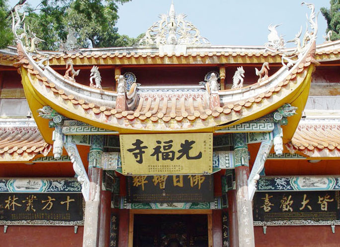 其中泸山第一殿光福寺是最大的建筑群,它由千佛殿、文武宫、魁星阁、望海楼、飞梁寺、大雄殿组成,设计精巧,规模宏伟。寺内保留着精湛的雕刻艺术,有全国罕见的省级保护文物地震碑陈列室,有历代名流题咏的诗词歌赋,有明代铜铁铸佛像、数千斤重的大铜像、塔式香炉等文物。寺庙前有汉、唐代时期古柏,银柯如铁、苍龙夭娇、上腾青霄,可称奇古。