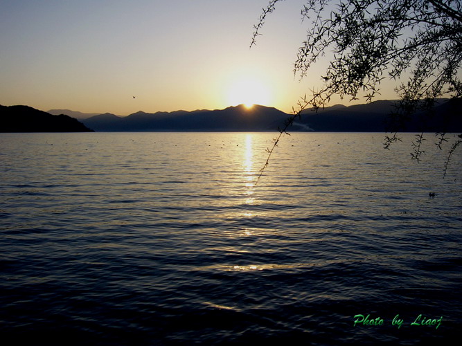 泸沽湖随四季的变化各具特色。阳春三月,周围桃树梨花,万话胜开,争妍斗艳,湛兰色的湖水,明净如镜,青松绿树,连峰映湖中,全然一副世外桃源的景象;炎热的夏天,湖水碧绿,波光粼粼,雨后烟雾缭绕,周围黛色丛林中,间杂着盛开的红白杜鹃花,景色宜人,凉爽无比,好一个避暑胜地;金色的秋天,大地一片黄橙橙,金黄色的秋业,点缀着周围的青山,湖水碧蓝,波光闪烁,彩霞飞渡,高空雁鸣;寒冬时节,翠色苍茫,一日当中,水色多变。