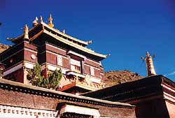 继续往东的一栋白色宫殿,就是班禅宫殿,位于红殿之上,一直是历代班禅大师的住所,尽管目前的建筑结构是建于六世班禅时期(1738-1780).但它不向公众开放,有兴趣者可从十世班禅灵塔的庭院进入班禅宫殿前部的几个小殿。