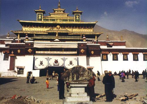 桑耶寺圆形“铁围山”围墙以内是芸芸众生所在的尘俗世界,众多塔殿可以随意参观,唯一卖票的地方是“世界中心”一乌策大殿。