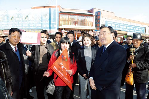 孔子云,有朋自远方来,不亦乐乎!4月8日,西藏自治区党委书记张庆黎在自治区党委常委、自治区常务副主席吴英杰和自治区党委常委、秘书长公保扎西的陪同下,专程来到拉萨市主要旅游企业和旅游场所进行考察调研,并与我区旅游部门负责同志进行座谈,要求全区各地市和有关部门一定要加大工作力度、做好充分准备,努力把西藏特色旅游品牌塑造好、树立好、维护好,以优良的旅游服务迎接八方宾朋,进一步开创我区旅游业跨越式发展新局面。